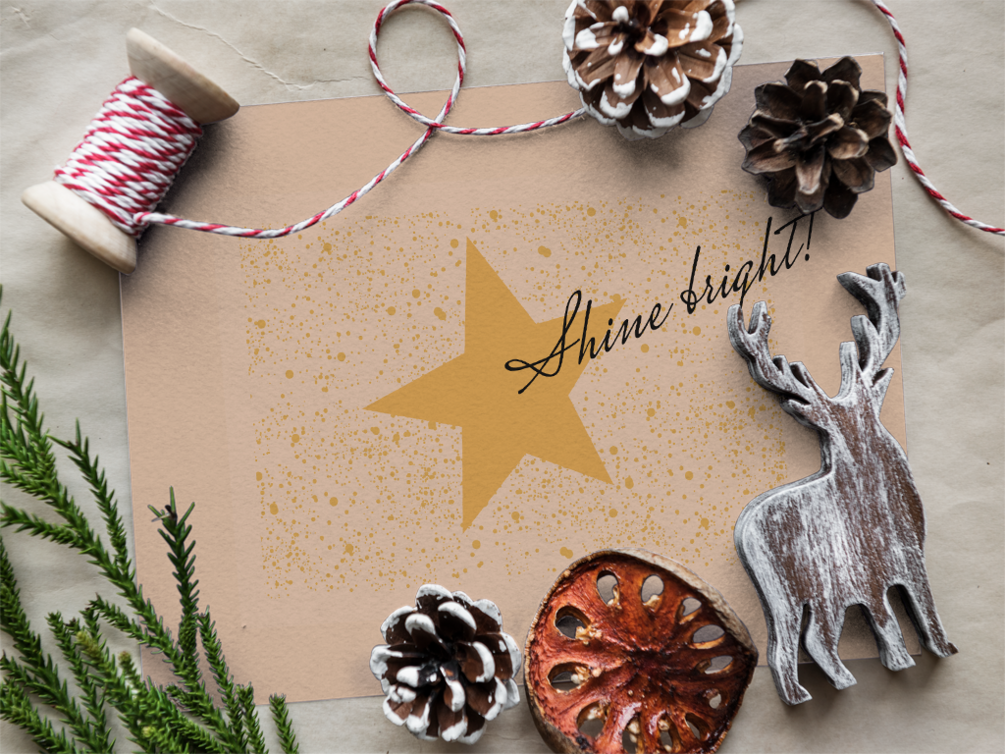 Printable Christmas postcard "Shine bright like a star"